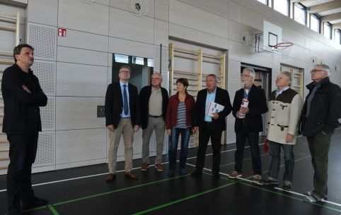 Mit seiner Fraktion und Bürgermeister Michael Göth ließ er sich von Schulleiter Peter Plößl und Architekt Manfred Kunert die neue Sporthalle zeigen. Die SPD habe sich von Anfang an im Stadtrat für eine Sanierung beziehungsweise den Neubau an der Jahnschule eingesetzt und sich laufend über den Fortgang der Maßnahme erkundigt, rief Bender ins Gedächtnis.