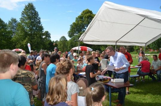Eine Rekordteilnehmerzahl verzeichnete die SPD bei der Neuauflage ihres jährlichen Spielefests im Stadtpark. Bei strahlendem Sonnenschein versuchten sich insgesamt 93 Kinder an den Stationen des Parcours. Im Anschluss erhielten alle Teilnehmer im Rahmen der Siegerehrung eine Urkunde und einen Preis. Bürgermeister Michael Göth kam zu Besuch und überreichte später persönlich die ersten Urkunden. Das Stadtoberhaupt gratulierte allen und wünschte schöne Ferien. Auch für die weiteren Aktionen im Ferienprogramm der Stadt Sulzbach-Rosenberg rührte er kräftig die Werbetrommel. Am Rande des Spielparcours war auch für die Eltern und Begleiter gesorgt. Bei kühlen Getränken machten sie es sich auf einem schattigen Plätzchen im Pavillon gemütlich.