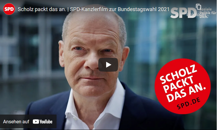Deutschlands Zukunft: Scholz packt das an. Aus Respekt für Dich. Mit Kompetenz für Deutschland. Unser Spot zur Bundestagswahl 2021. Teile unseren Spot in Deinem Freundeskreis. Erzähle ihnen, warum unser Land einen Kanzler mit Mut und Ideen braucht. Nicht nur etwas wollen, sondern es auch machen. Olaf Scholz.