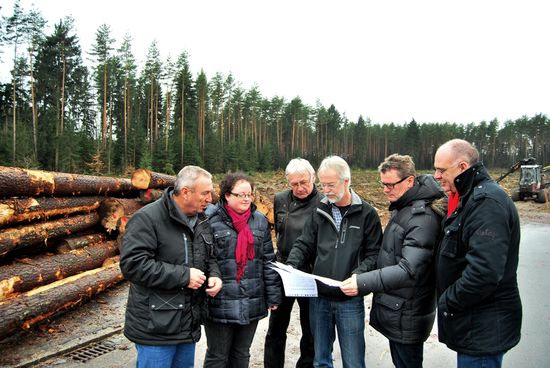 Michael Göth und sein Team besichtigten die derzeit in Rodung befindliche Erweiterungsfläche im Gewerbegebiet Kauerhof und sahen ihre Linie bestätigt. Das bestehende Gewerbegebiet mit einer Größe von 9 Hektar wird um weitere 9,4 Hektar erweitert. Gut die Hälfte davon befindet sich bereits im städtischen Besitz und die Nachfrage nach Flächen teilweise zur Erweiterung der bestehenden Betriebe, aber auch für kleinere Neuansiedelungen machen die Rodung jetzt notwendig.