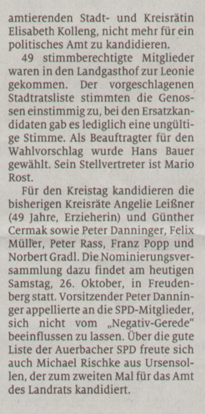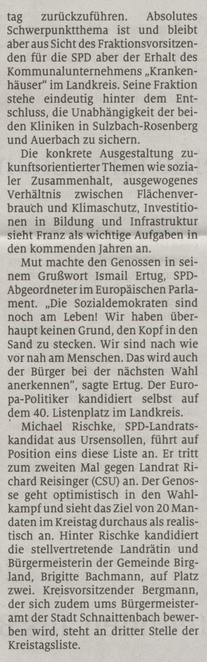 Die Delegiertenkonferenz des SPD Kreisverbandes Amberg-Sulzbach hat heute den Ursensollener Ortsvorsitzenden und Kreisrat Michael Rischke einstimmig zum Kandidaten für das Amt des Landrates des Landkreises Amberg-Sulzbach gewählt!