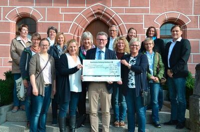 Su-Ro, 21.9.2017 (san). Bürgermeister Michael Göth (vorne, mit Scheck) hatte im Vorfeld seines 50. Geburtstages am 13. Mai darum gebeten, ihm keine Geschenke zu machen, sondern Geld zu spenden. Nicht für sich selbst, sondern für andere. Zusammengekommen sind immerhin 4000 Euro. Dieses Geld verteilte der Bürgermeister am Donnerstagnachmittag an 13 soziale Einrichtungen in der Herzogstadt.