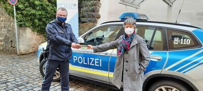 Gerade im Corona-Jahr war es Ehrensache für die SPD-Stadtratsfraktion, ihren traditionellen Weihnachtsbesuch beim Roten Kreuz und der örtlichen Polizei-Inspektion nicht ausfallen zu lassen und Danke zu sagen für deren Arbeit. Der Pandemie angemessen, waren nur Faktionschef Joachim Bender und 3. Bürgermeisterin Hildegard Geismann unterwegs, und aus den sonst längeren Besuchen wurde eine Stipp-Visite im Freien.