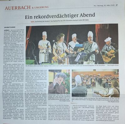Wir freuen uns über Ihren Besuch. Sie finden hier Ansprechpartner, Termine und Infos zur SPD und unserer Arbeit. Wir bemühen uns um eine ehrliche, bürgernahe Politik für alle Auerbacher Bürger durch eine nachhaltige, zielgerichtete Kommunalpolitik. Dazu möchten wir auch Ihre Meinungen und Wünsche wissen. Wir würden es sehr begrüßen, wenn Sie sich damit an unsere Rats- und Vorstandsmitglieder wenden.